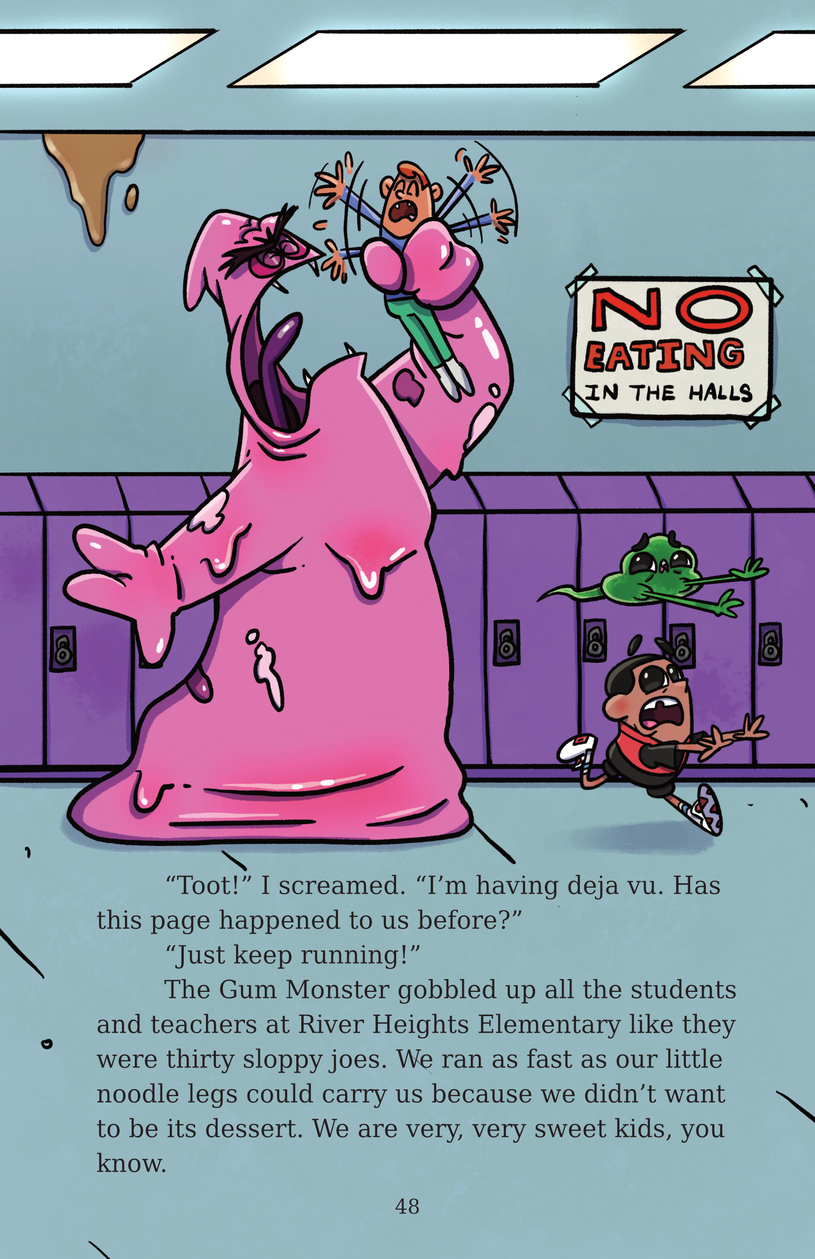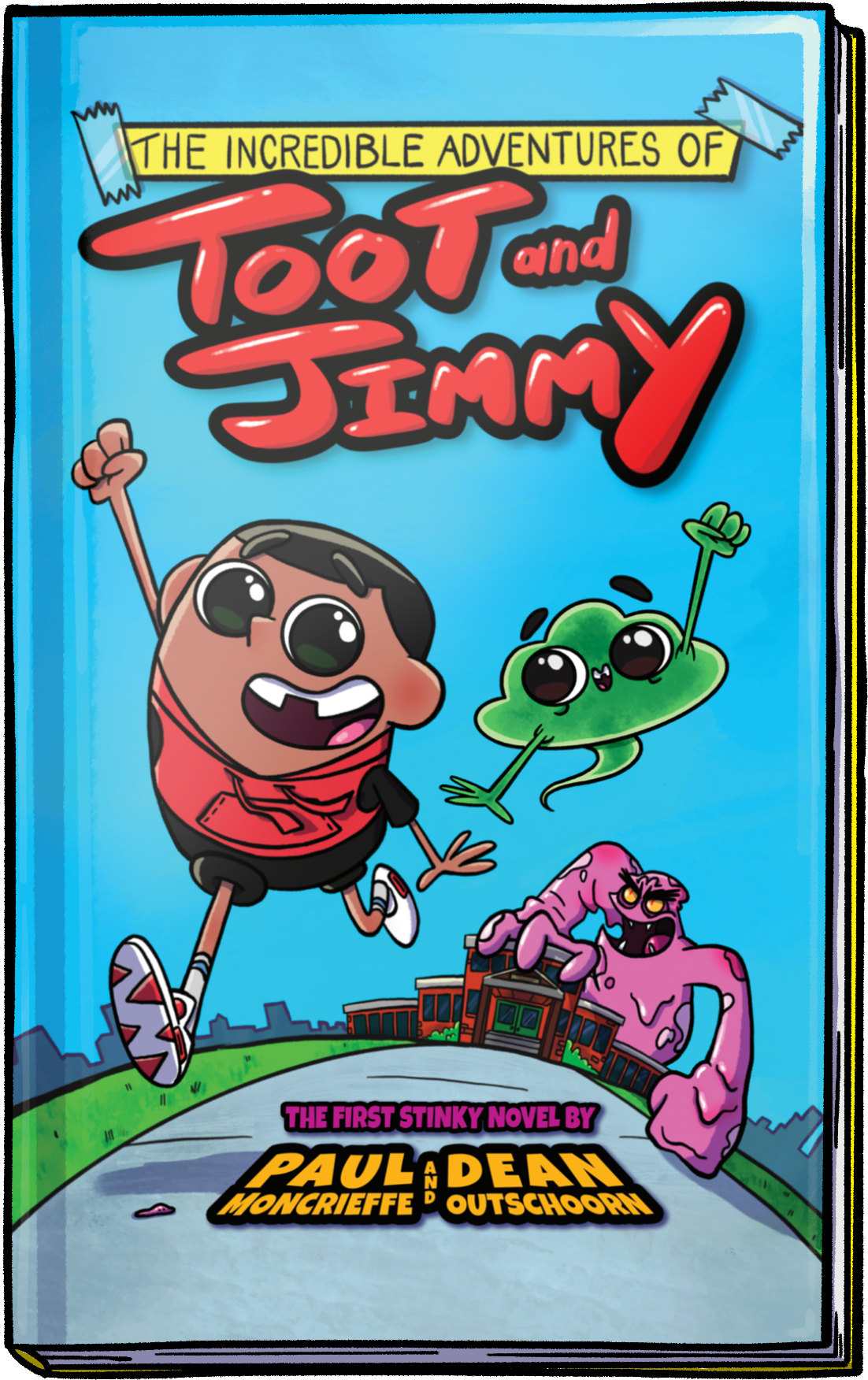 Introducing The Incredible Adventures of Toot and Jimmy! The first book in a new series by Toot Books Inc; written for newly independent readers. With pages full of comical characters, colorful illustrations, interactive activities and visual story clues, The Incredible Adventures of Toot and Jimmy will boost even the reluctant reader’s confidence! In book one, the story follows our main character Jimmy, a ten-year-old craft-fanatic who obsesses over making friends at his new school. However, after Jimmy farts out a talking, lovable, magical fart named Toot, friends are hard to come by… especially when they accidentally unleash an icky-sticky Gum Monster that wants to swallow the world — starting with their new school and all of its inhabitants! Follow along with Jimmy and his newly-farted friend as they problem solve and conquer disgusting evil with the power of friendship, humor… and STINK!