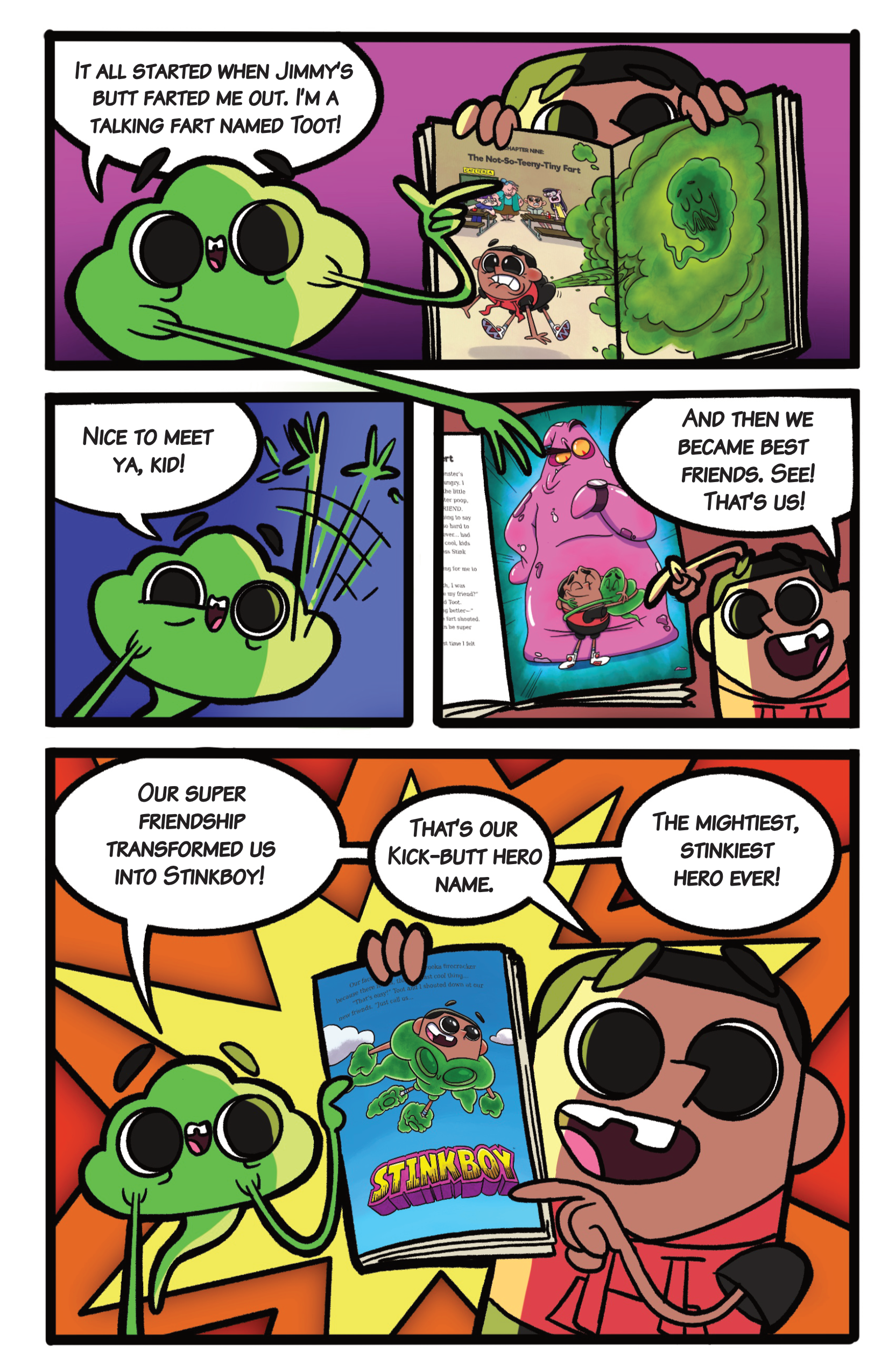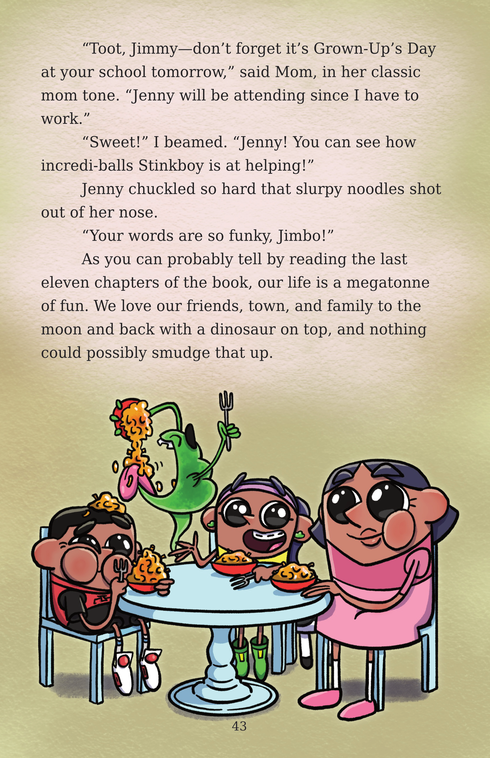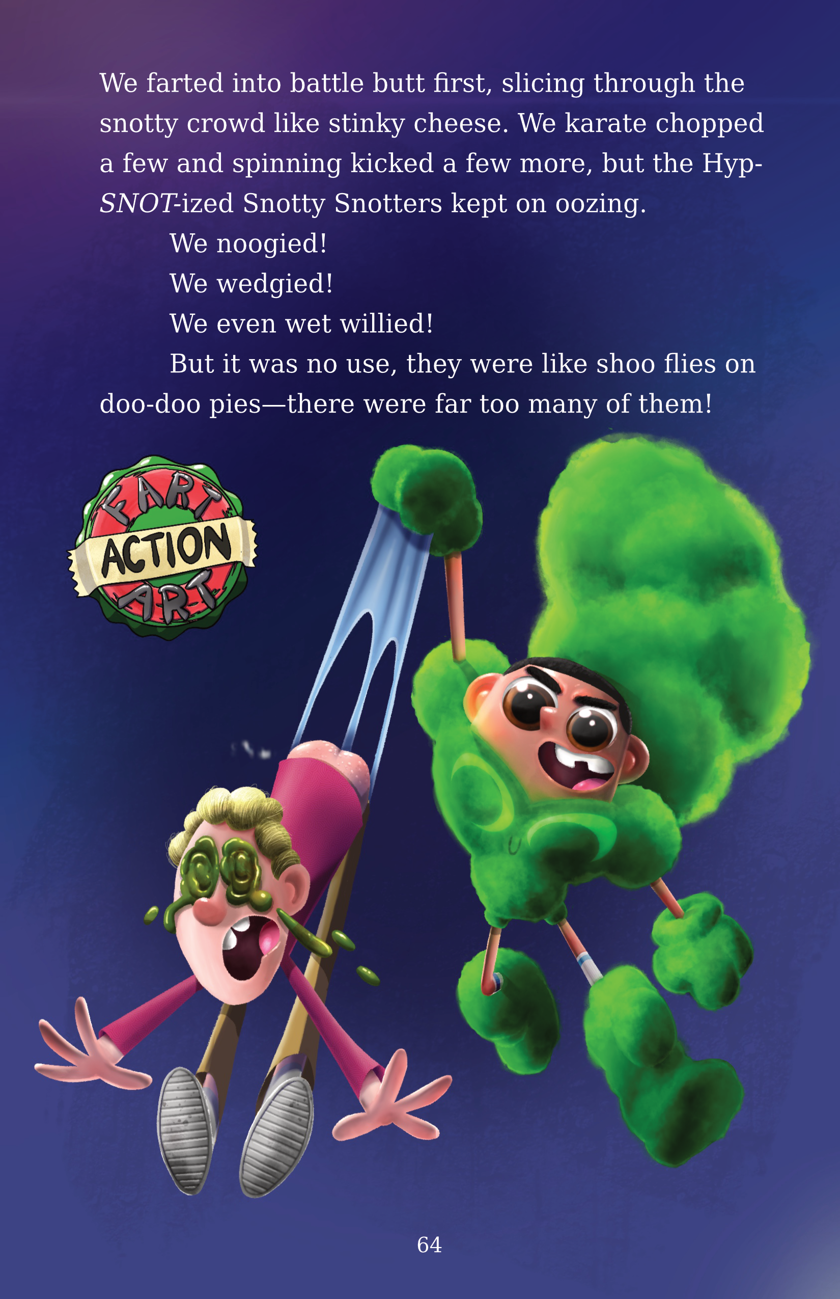 Welcome to the magnificently goopy sequel of The Incredible Adventures of Toot and Jimmy! In Toot and Jimmy VS Doc Snot — 10-year-old Jimmy Jam Jeremiah and his magical fart named Toot, must learn what it takes to be a true hero, while battling their mischievous archenemy, DOC SNOT! The story is jam packed with disgusting belly-laughs, kick-butt-action and interactive fun — which includes puzzles and mazes! It's another snotty adventure with your favorite smelly kid and his fart that kids of all ages won't be able to put down! They can read it over and over, and still find new fart jokes and snot clues on every page!